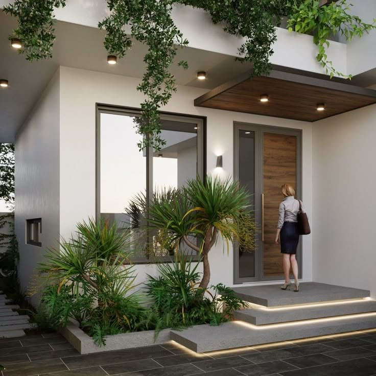 Rumah Anda bergaya minimalis? Pilih taman dengan garis lurus, batu-batu kerikil putih, dan tanaman berdaun tegas seperti lidah mertua (Sansevieria) atau Monstera dalam pot minimalis.